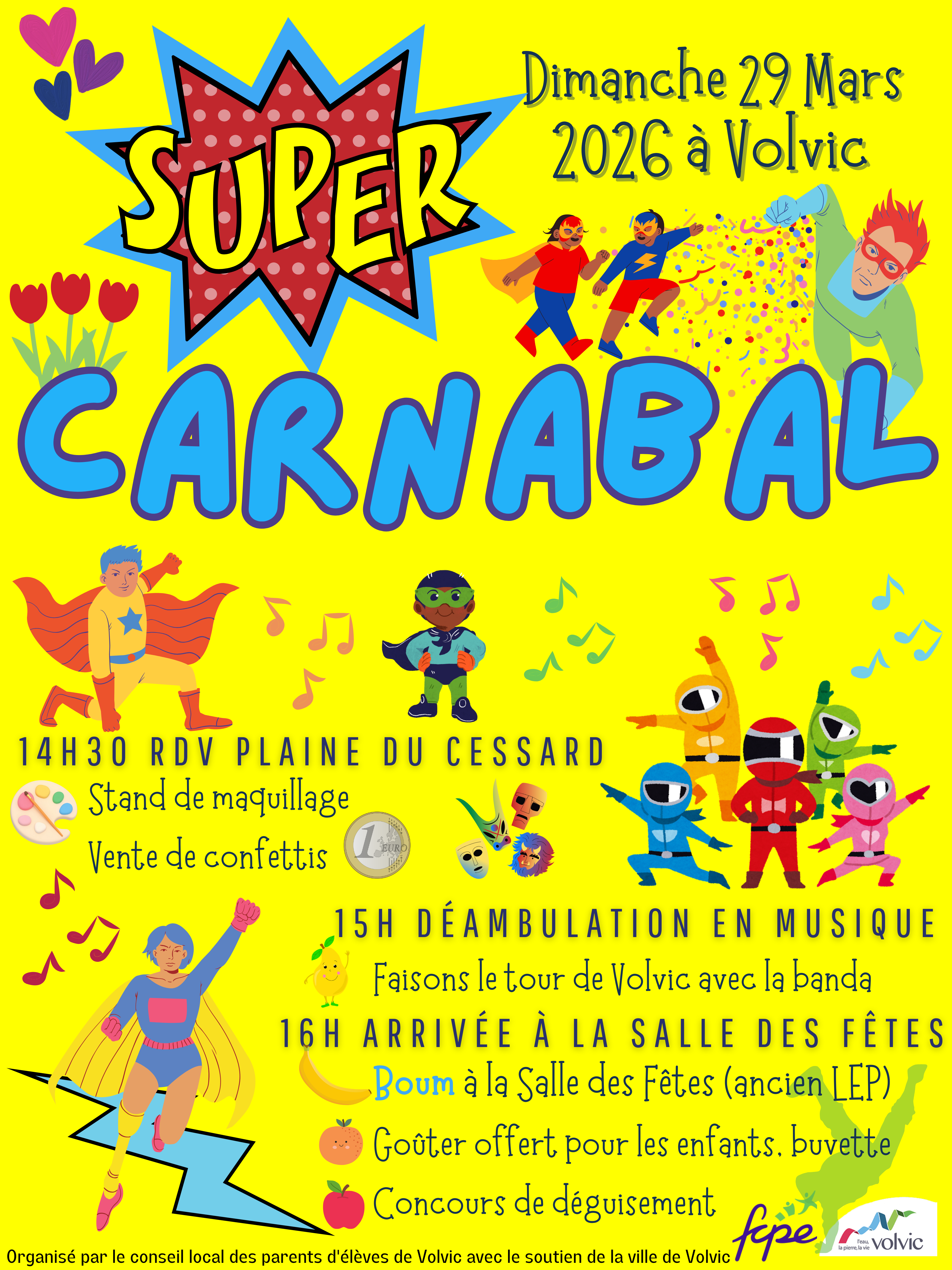 Dimanche 29 mars, l’association de parents d’élèves FCPE Volvic organise son Super Carnabal !
