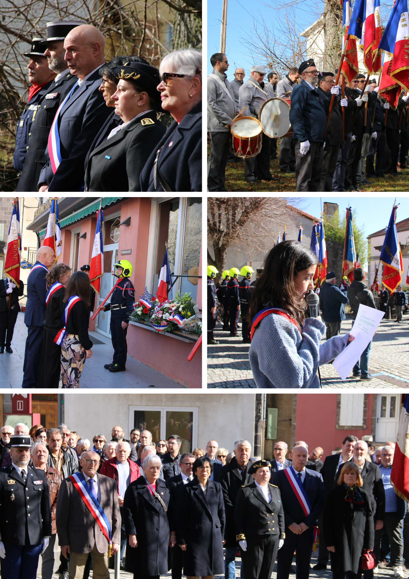 Après un hommage célébré à Pulvérières, des dépôts de gerbes et des lectures des enfants du Conseil Municipal des Jeunes se sont tenus à l’Hôtel du commerce de Volvic et à l’Arbre de la Liberté à Volvic.