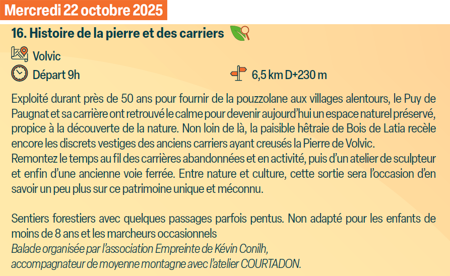 Ce programme proposera plus de 40 balades dont 5 à Volvic :