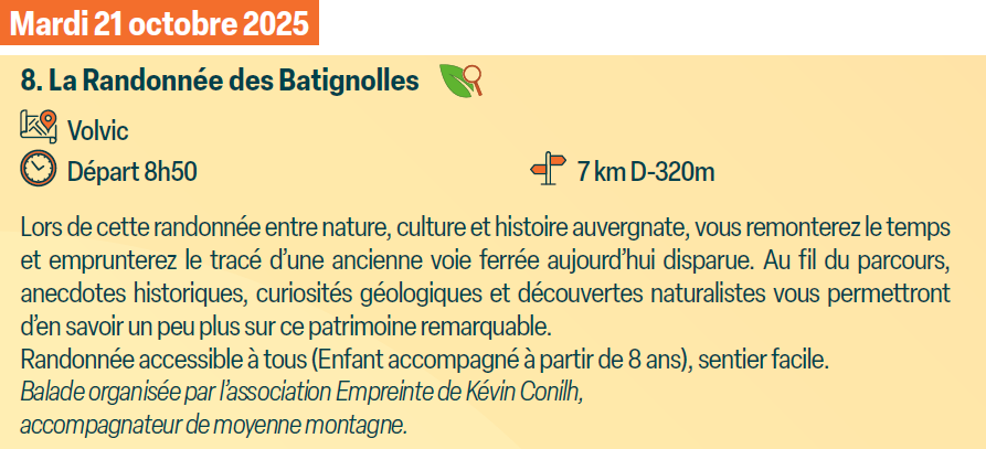 Du 18 au 26 octobre 2025, le Festival de Balades, organisé chaque automne par la Communauté d’agglomération Riom Limagne et Volcans, en collaboration avec les associations du territoire et les guides accompagnateurs de montagne et les producteurs locaux est de retour.