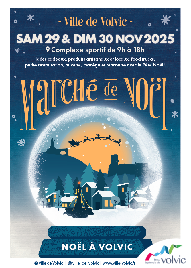 La magie de Noël prendra vie à Volvic samedi 29 et dimanche 30 novembre avec un marché de Noël au complexe sportif !